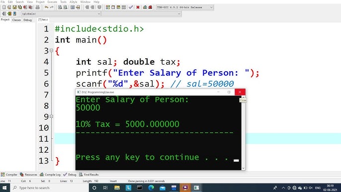 C Program To Calculate Tax On A Salary Learn Coding Youtube